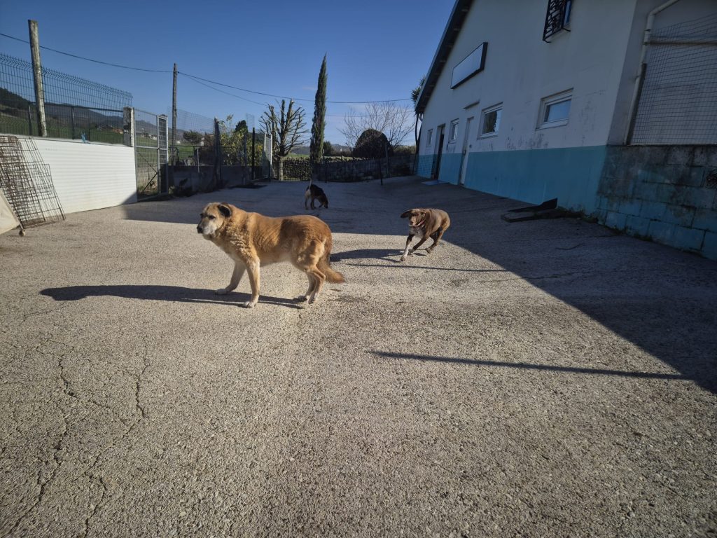 Spanische Tierschützer holten Chenoa in einer Stadt ganz in der Nähe von Sahagún ab. Ihr Besitzer war gestorben, und sie lebte seit zwei Jahren auf der Straße. Sie fraß das wenige, was ihr ein Nachbar gab, und brachte jedes Mal, wenn sie läufig war, Welpen zur Welt. Der Mann, der sie fütterte, tötete ihre Würfe. Eine Kastration war offenbar keine Option. Als der Nachbar den letzten Wurf von Chenoa nicht finden konnte, bat er die Tierswchützer um Hilfe. Chenoa hatte ihre acht Welpen gut versteckt. Als der Mann es bemerkte, waren die Welpen bereits zwei Monate alt, und er wagte es nicht, sie zu töten.